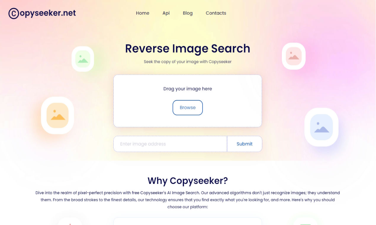 Copyseeker is a groundbreaking AI reverse image search tool that redefines the way you search for images online. With its advanced algorithms, Copyseeker stands out by offering unmatched precision in identifying and matching images across the internet. This tool is an invaluable asset for artists, photographers, and content creators, enabling them to efficiently track the usage of their images and detect unauthorized copies.