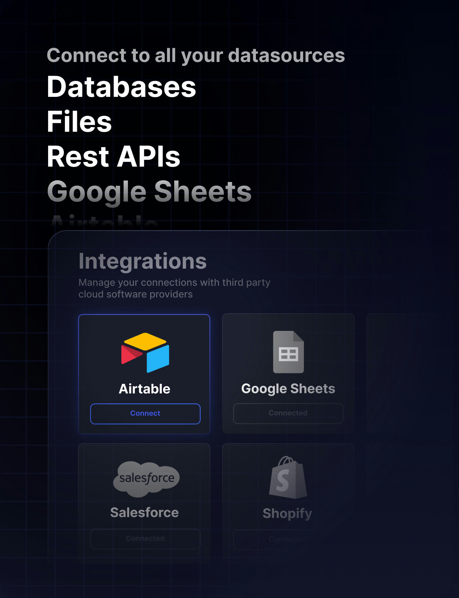 Furthermore, the AI Dashboard Builder is designed to integrate effortlessly with a vast range of data sources.