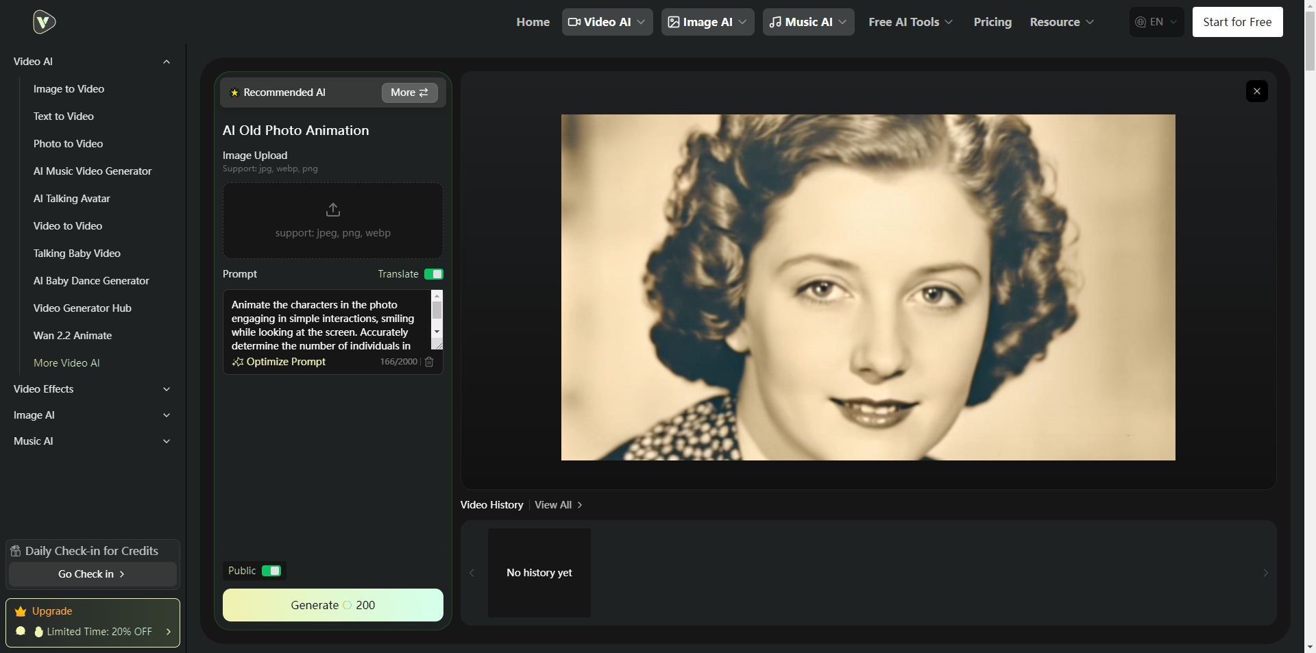 Videoweb AI Old Photo Animation is an innovative online tool designed to transform static vintage photographs into captivating animated videos.